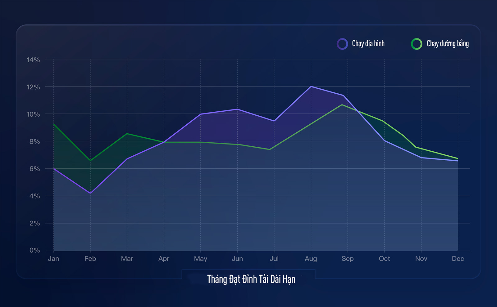 Xu hướng theo mùa cũng có ảnh hưởng rõ rệt người chạy địa hình thường đạt đỉnh vào tháng 8, nhờ tận dụng các giai đoạn tập luyện dài ngày trên núi trong mùa hè. Trong khi đó, người chạy đường bằng lại đạt phong độ cao nhất vào tháng 9, trùng với mùa thu bắt đầu thời kì gặt hái PR của marathon.