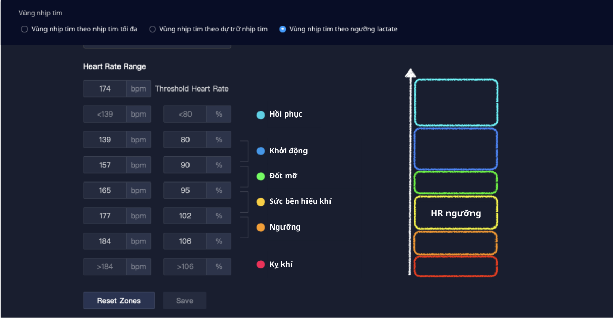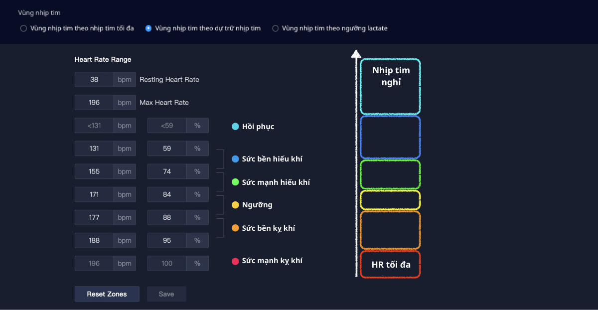 Phân chia vùng nhịp tim Dự trữ trên Training Hub. (Click để xem)