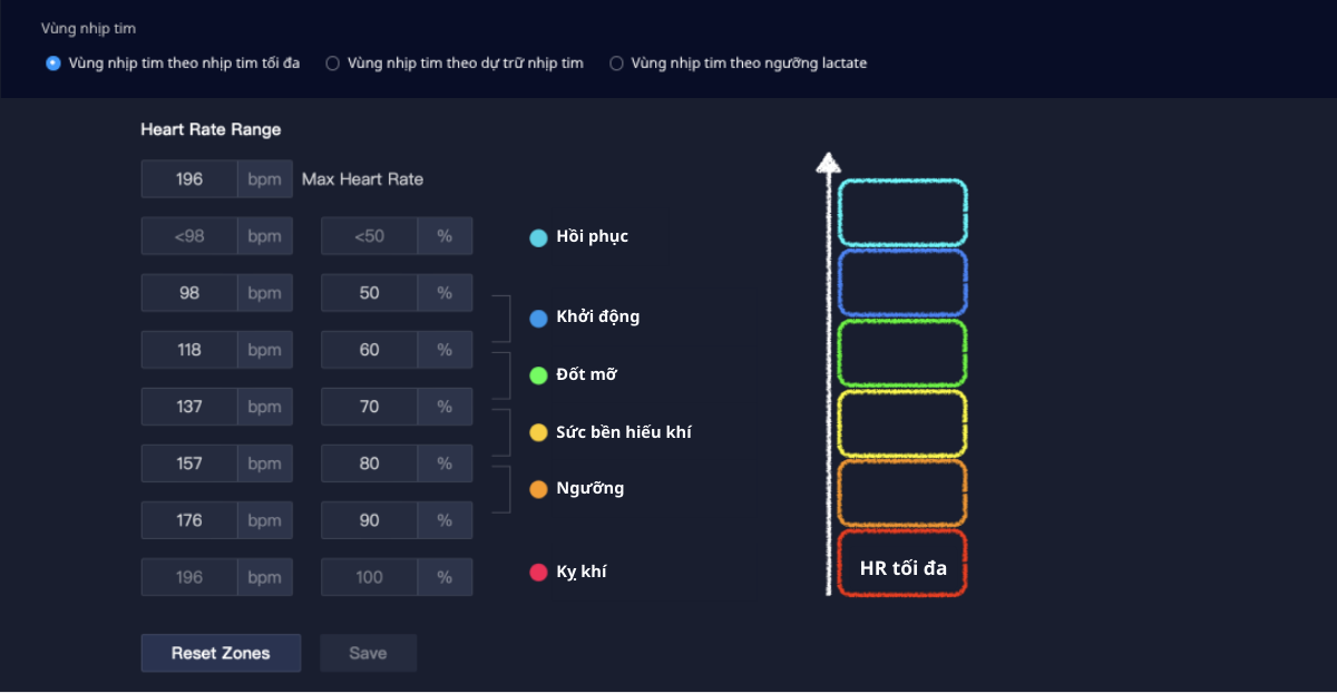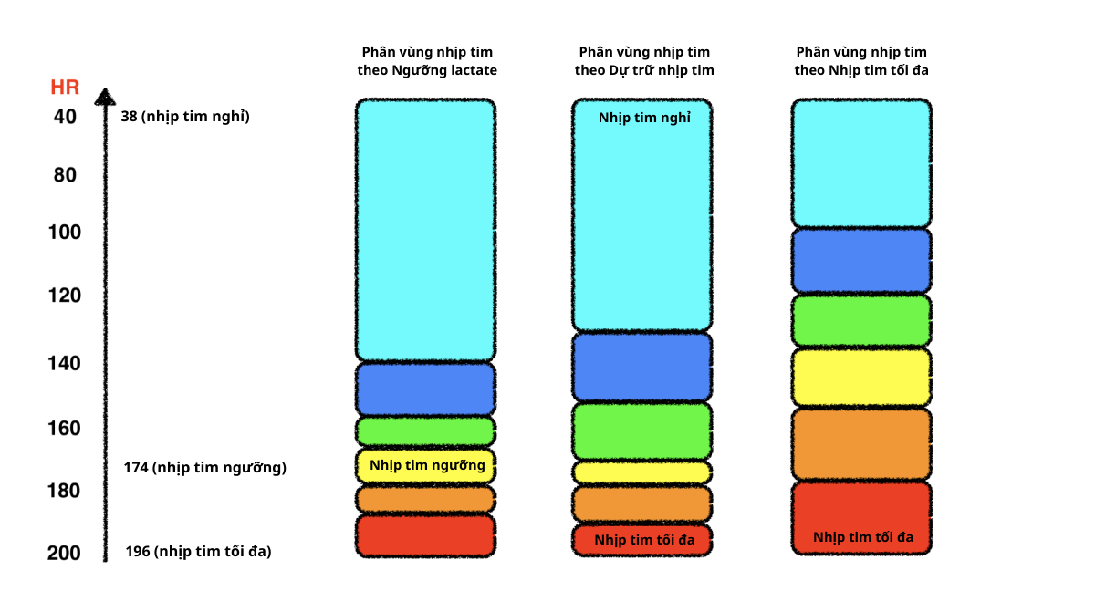 Cách phân chia vùng nhịp tim (HR) |